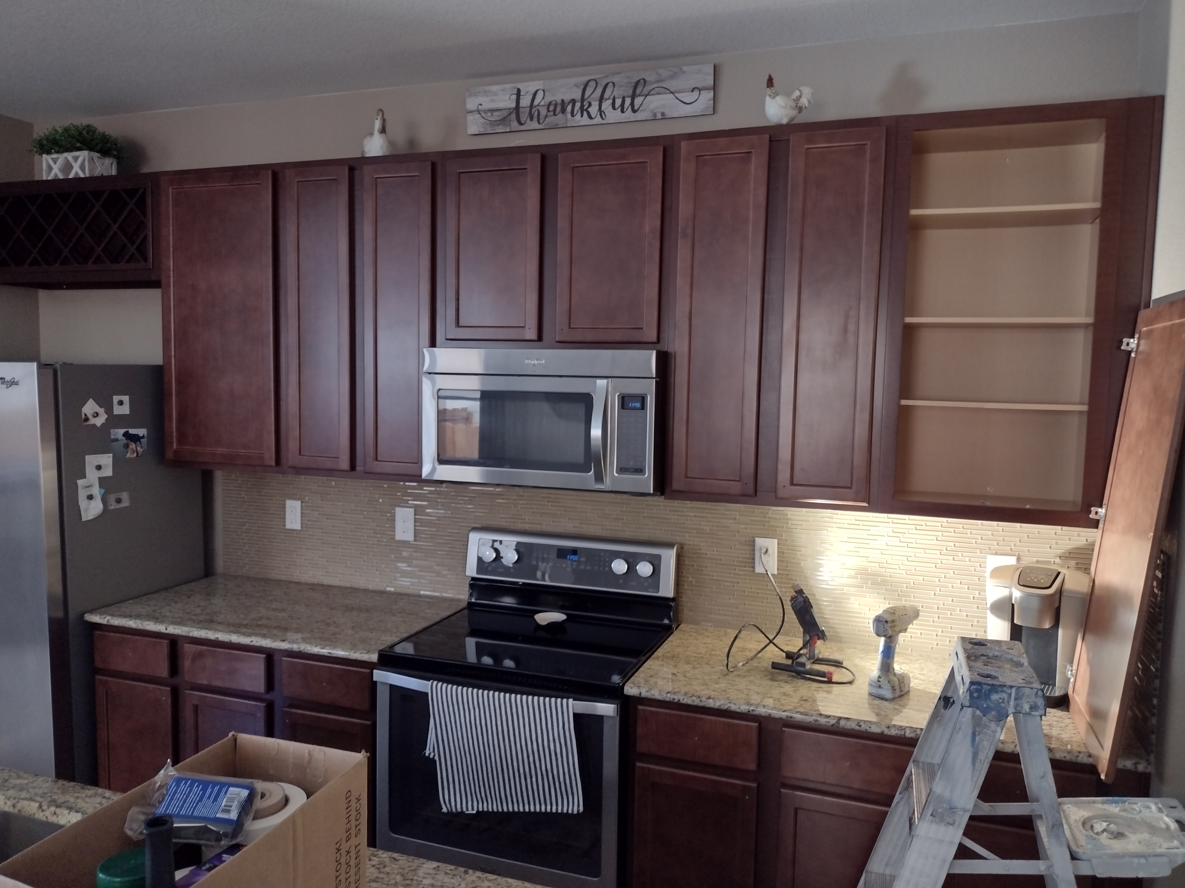 Our services include Residential Interiors / Exteriors – Cabinet & Furniture Wood Refinish – Driveway & Garage Floor, Tile Backsplash